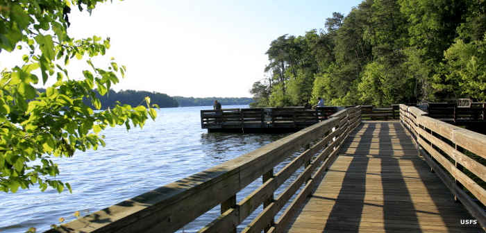 An accessible fishing dock at Kings Mountain Point Day Use Area